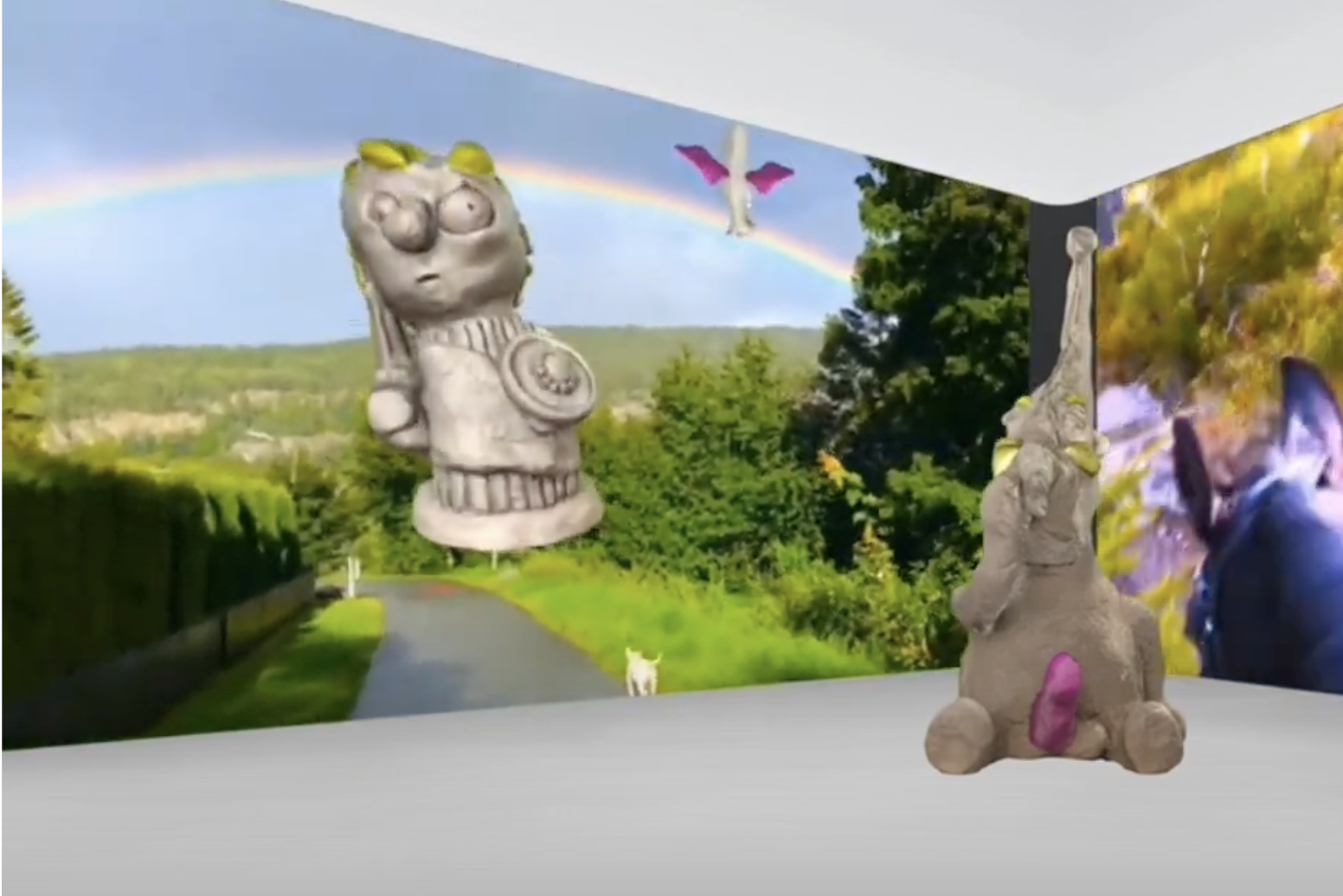 By using this ancient figurine as a model, I recreated the Valkyrie by sketching her face with my own expression and interpretation. Then created a clay sculpture based on this, 3d scanned and colored it in vibrant colors. This 3d figure is used in virtual galleries, animated in videos and then also 3d printed and painted.